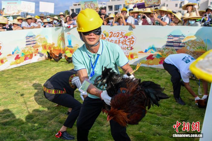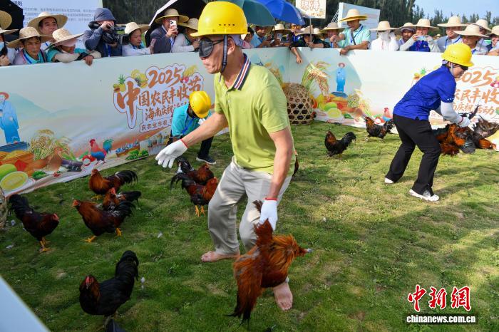 图为参赛者停止“抓儋州鸡”角逐。中新社记者 骆云飞 摄