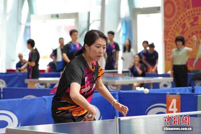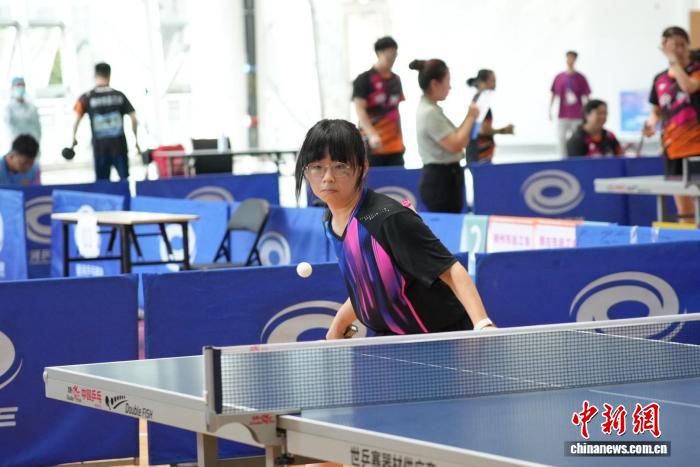 图为疏通员正在乒乓球角逐中预备归球。广西总工会 供图
