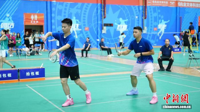 图为行动员正在羽毛球角逐中归球。广西总工会 供图