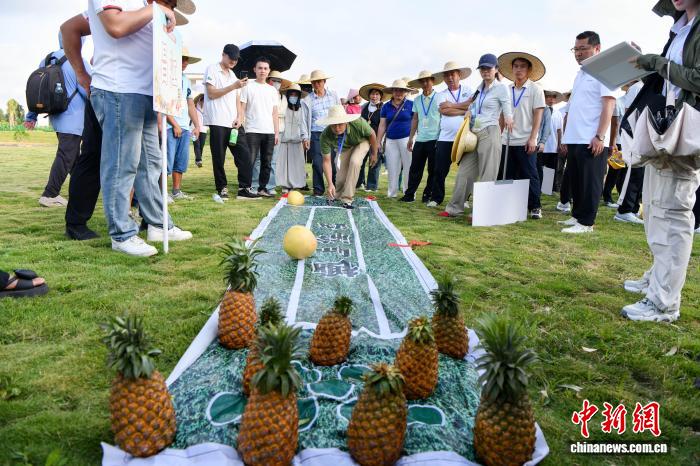 图为参赛者停止“儋州蜜柚菠萝保龄球”角逐。中新社记者 骆云飞 摄