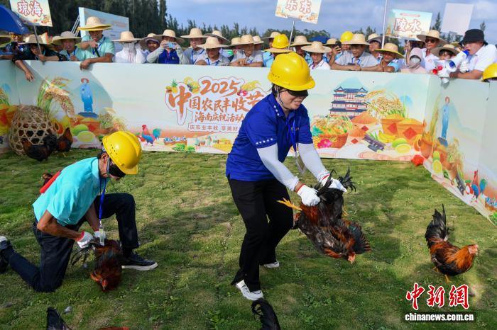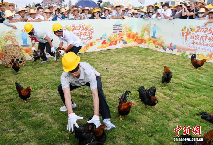 图为参赛者停止“抓儋州鸡”角逐。中新社记者 骆云飞 摄