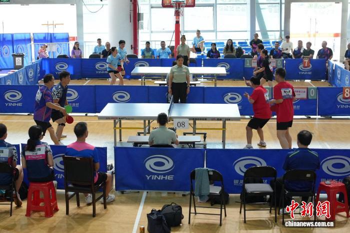 图为广西第两届齐区员工行动会乒乓球角逐现场。广西总工会 供图
