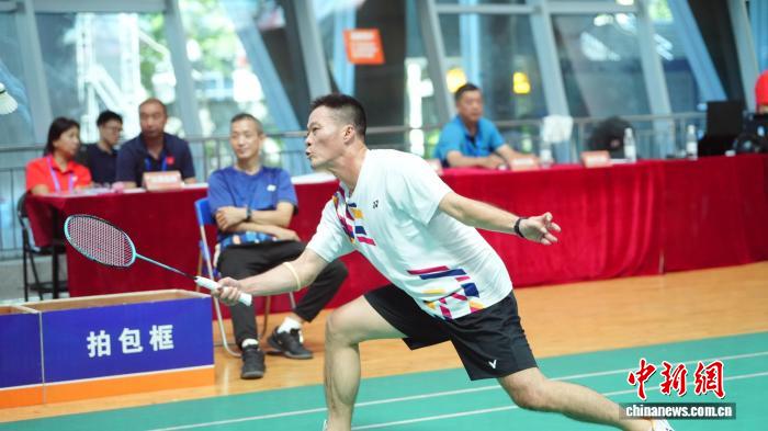 图为行动员正在羽毛球角逐中归球。广西总工会 供图